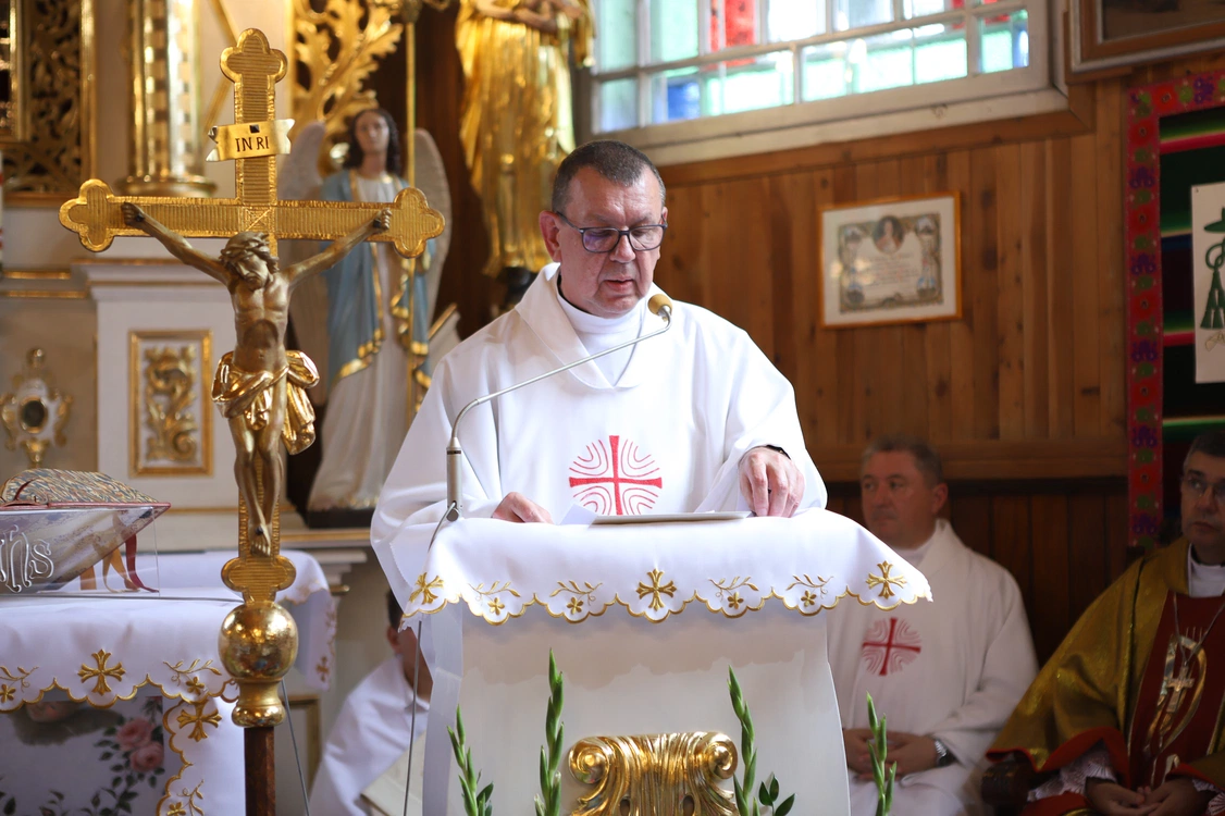 Ich starania zostały zauważone przez bp. Osiala, który przewodniczył Eucharystii. - Serce się raduje, gdy widzę kościół pełen ludzi. Wzruszam się, gdy widzę troskę o tradycje, o stroje ludowe, własnoręcznie wykonane kwiaty dla Pana Jezusa, tak licznie zgromadzone poczty sztandarowe, muzyków, gromadę ministrantów i tak zadbany kościół. Macie tu perłę wśród kościołów, z różnych względów. Ta świątynia pachnie tradycją, chlebem, drewnem, troską, miłością i miłosierdziem. Przez 500 lat to tu spadały łzy grzeszników, tu zawierano sakramenty małżeństwa, przynoszono dzieci, by dołączyły do wspólnoty Kościoła. Tu powierzano Bogu dusze waszych przodków i stąd odprowadzano ich do życia wiecznego. Ile te konfesjonały usłyszały grzechów? Ile tu było przebaczenia, miłości, łez i szczęścia? Najpiękniejsze jest to, że ta historia trwa i dzięki wam trwać będzie - mówił biskup łowicki.