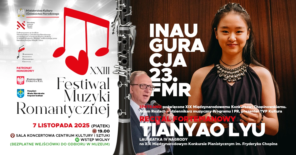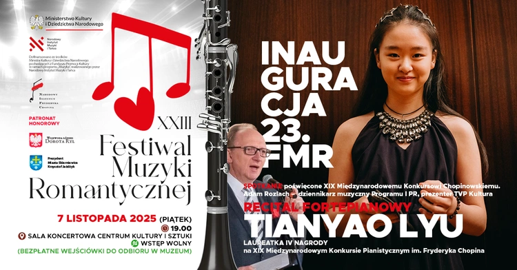 Już 7 listopada w sali koncertowej Centrum Kultury i Sztuki zabrzmią pierwsze dźwięki XXIII Festiwalu Muzyki Romantycznej w Skierniewicach. Tegoroczną edycję zainauguruje wyjątkowy recital Tianyao Lyu - jednej z najbardziej utalentowanych pianistek młodego pokolenia, która zachwyciła publiczność i jurorów podczas XIX Międzynarodowego Konkursu Fryderyka Chopina.