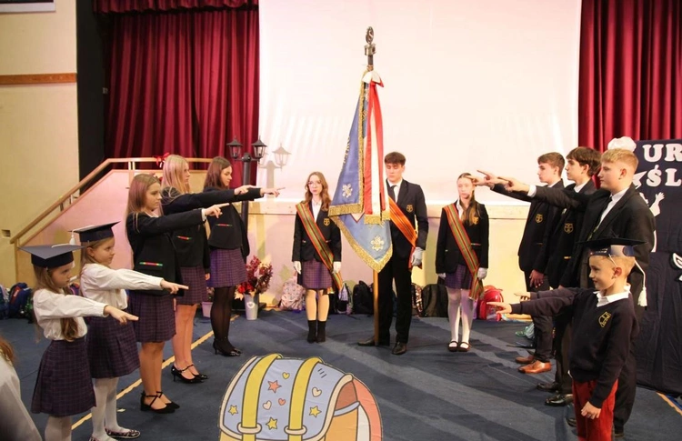 Dalsza część uroczystości odbyła się w sali gimnastycznej, gdzie licznie zgromadzili się goście, wśród nich przedstawiciele władz samorządowych, byli nauczyciele, rodzice oraz absolwenci. Po wprowadzeniu sztandaru i odśpiewaniu hymnu państwowego ważnym punktem stało się ślubowanie uczniów klas pierwszych szkoły podstawowej oraz liceum. Najmłodsi zaprezentowali również część artystyczną, a każdy z pierwszoklasistów został pasowany na ucznia przez dyrektora Przemysława Jabłońskiego. W tym roku naukę w dwóch klasach pierwszych rozpoczęło 39 dzieci pod opieką Agnieszki Dudzińskiej i Patrycji Jaski.