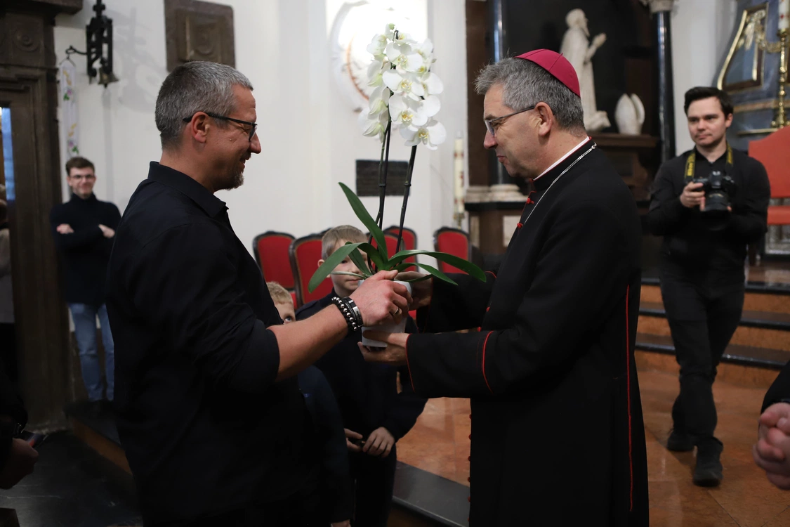 Po Mszy św. nie brakowało chętnych do składania życzeń. Te przyjmowały różną formę - wierszy, piosenek, słów zapewnienia o obecności i gotowości do działania, ale także "zadań" dla biskupa, jak dążenie do świętości, wsłuchiwanie się w głos Boga i otwartość na dialog.