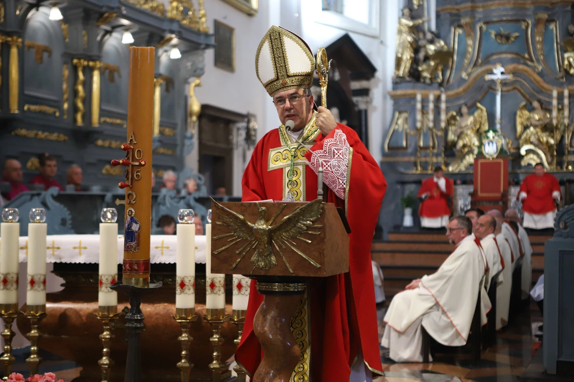 W dniu imienin biskupowi towarzyszyły także relikwie św. Wojciecha, które specjalnie na tę okazję opuściły diecezjalny skarbiec.